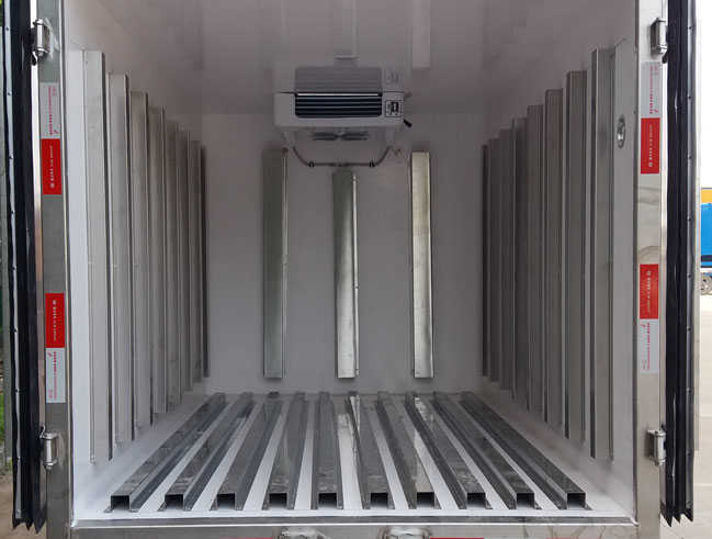 (2)廂板材質:內外壁板選用國內優質玻璃鋼(不吸光、隔熱性好、硬度強、抗氧化);中間保溫層厚度8CM。地板采用鋁花紋板,門邊條采用迷宮式橡膠密封條。
