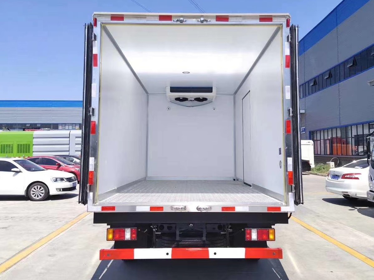 (2)廂板材質(zhì):內(nèi)外壁板選用國(guó)內(nèi)優(yōu)質(zhì)玻璃鋼(不吸光、隔熱性好、硬度強(qiáng)、抗氧化);中間保溫層為XPS擠塑聚笨板或者聚氨酯發(fā)泡;廂體厚度8CM。地板采用鋁花紋板,門(mén)邊條采用迷宮式橡膠密封條。