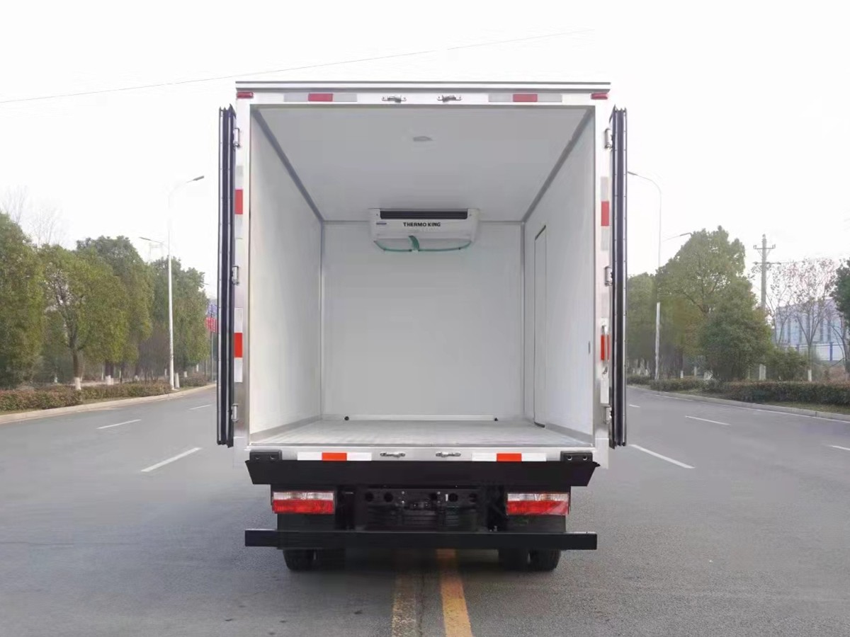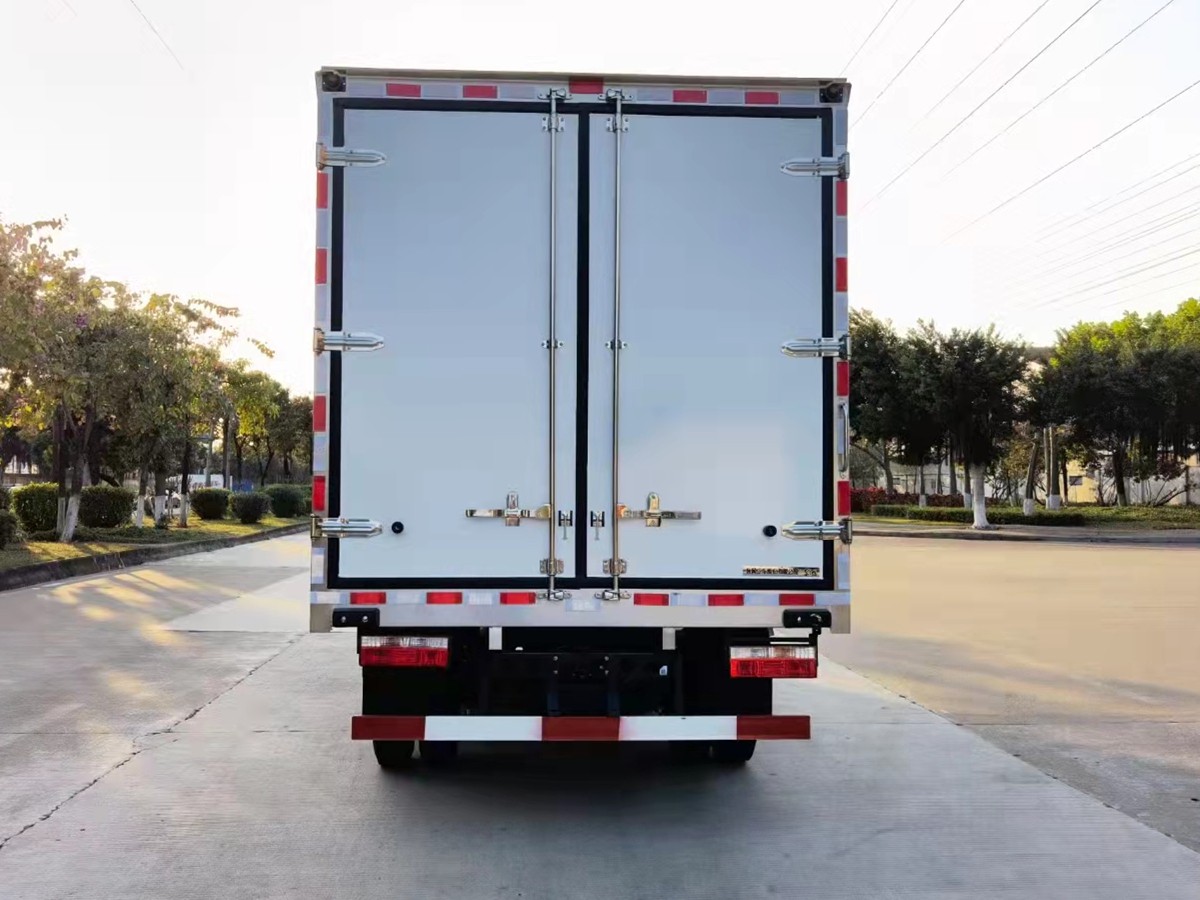 (2)廂板材質:內外壁板選用國內優質玻璃鋼(不吸光、隔熱性好、硬度強、抗氧化);中間保溫層為XPS擠塑聚笨板;廂體厚度8CM。地板采用鋁花紋板,門邊條采用迷宮式橡膠密封條。