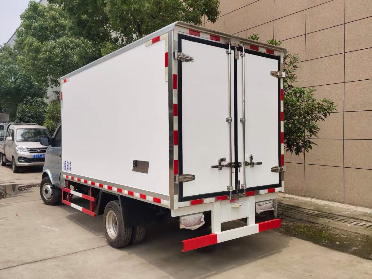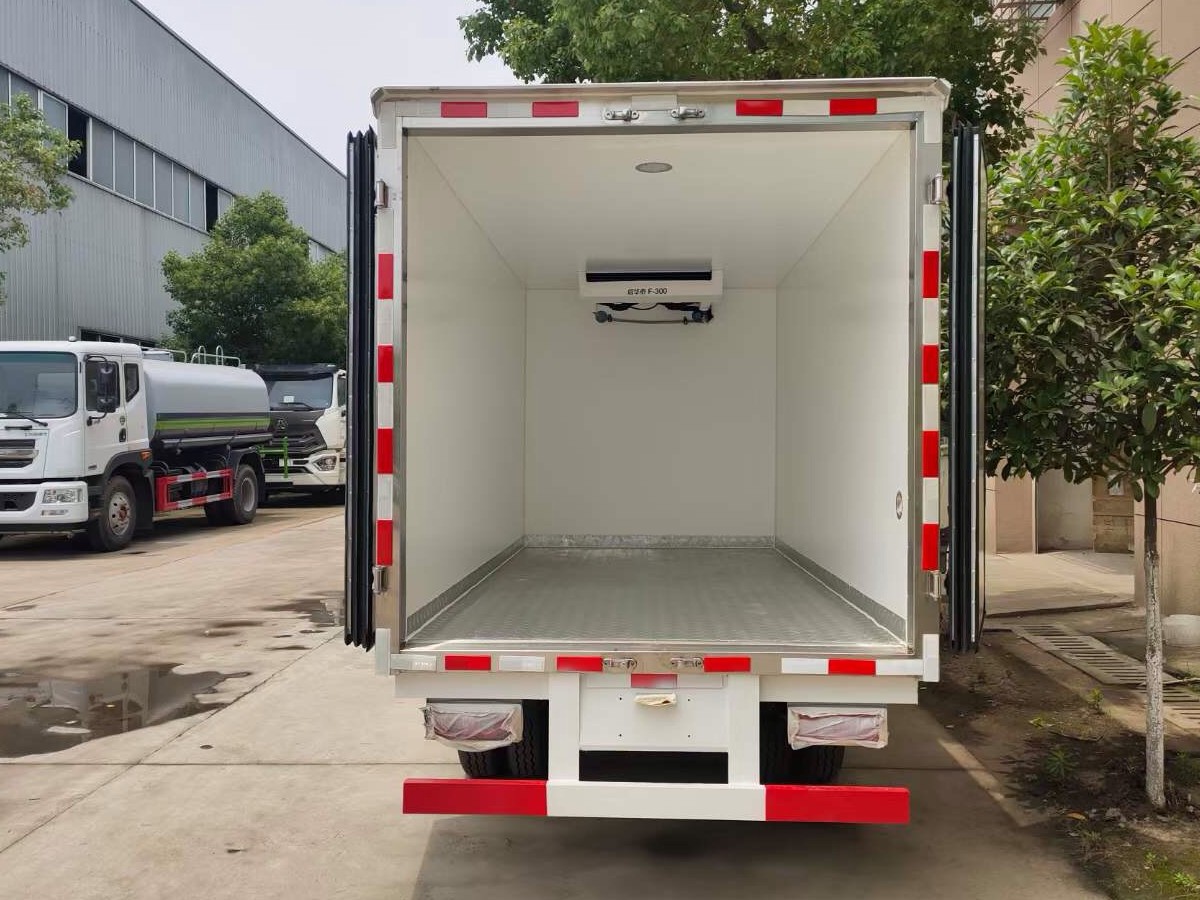 (2)廂板材質:內外壁板選用國內優質玻璃鋼(不吸光、隔熱性好、硬度強、抗氧化);中間保溫層為XPS擠塑聚笨板或聚氨酯;廂體厚度8CM。地板采用鋁花紋板,門邊條采用迷宮式橡膠密封條。