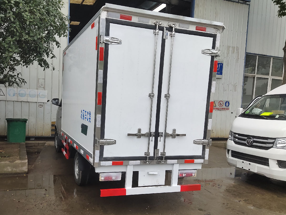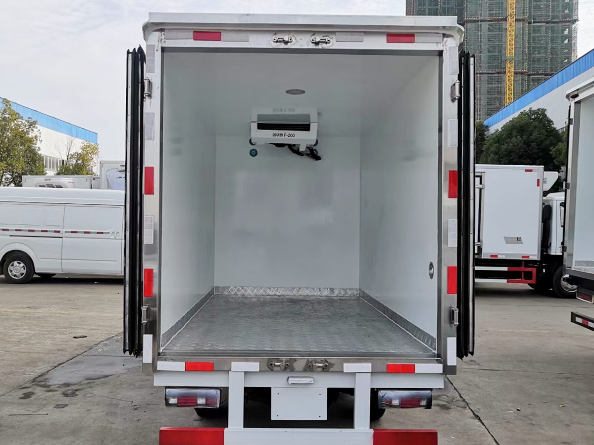 (2)廂板材質:內外壁板選用國內優質玻璃鋼(不吸光、隔熱性好、硬度強、抗氧化);中間保溫層為XPS擠塑聚笨板;廂體厚度8CM。地板采用鋁花紋板,門邊條采用迷宮式橡膠密封條。