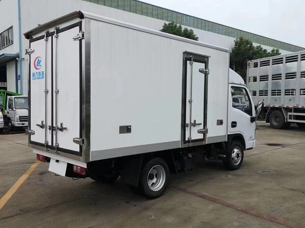 上裝配置:廂體內外玻璃鋼,中間8公分厚保溫板,鋁花紋防滑底板,不銹鋼門框及鎖件,鋁合金包邊,后雙開門,側開門。
