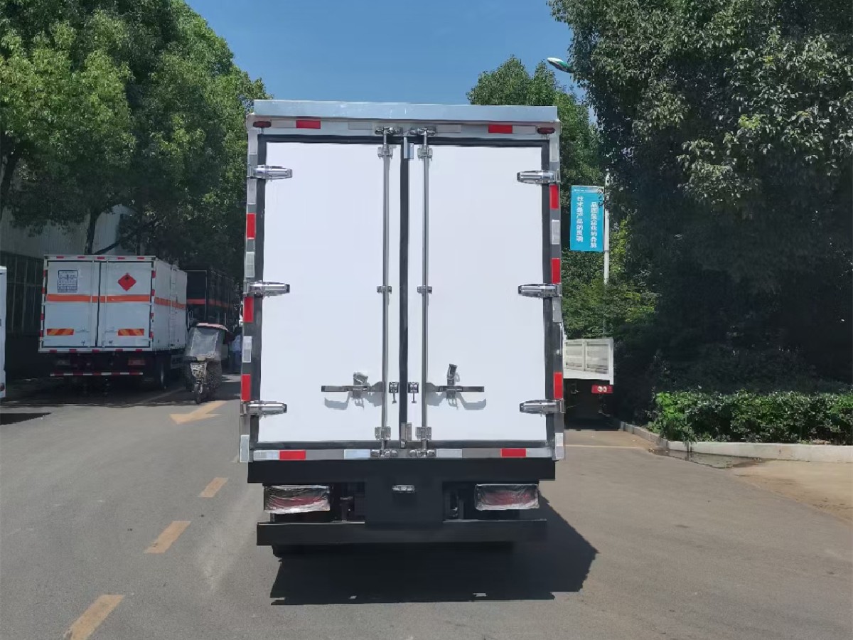 (2)廂板材質(zhì):內(nèi)外壁板選用國(guó)內(nèi)優(yōu)質(zhì)玻璃鋼(不吸光、隔熱性好、硬度強(qiáng)、抗氧化);中間保溫層為XPS擠塑聚笨板或聚氨酯;廂體厚度8CM。地板采用鋁花紋板,門(mén)邊條采用迷宮式橡膠密封條。