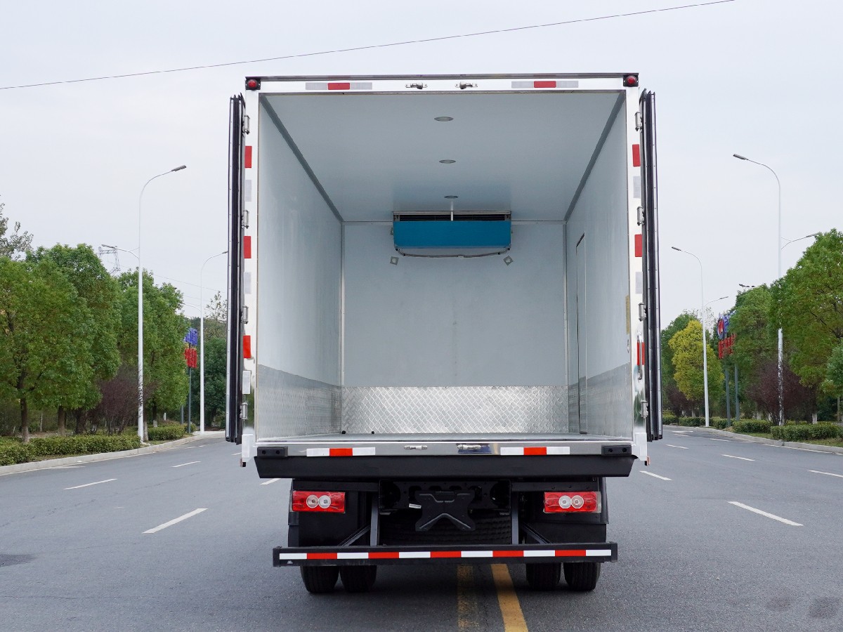 (2)廂板材質(zhì):內(nèi)外壁板選用國(guó)內(nèi)優(yōu)質(zhì)玻璃鋼(不吸光、隔熱性好、硬度強(qiáng)、抗氧化);中間保溫層為XPS擠塑聚笨板;廂體厚度8CM。地板采用鋁花紋板,門邊條采用迷宮式橡膠密封條。