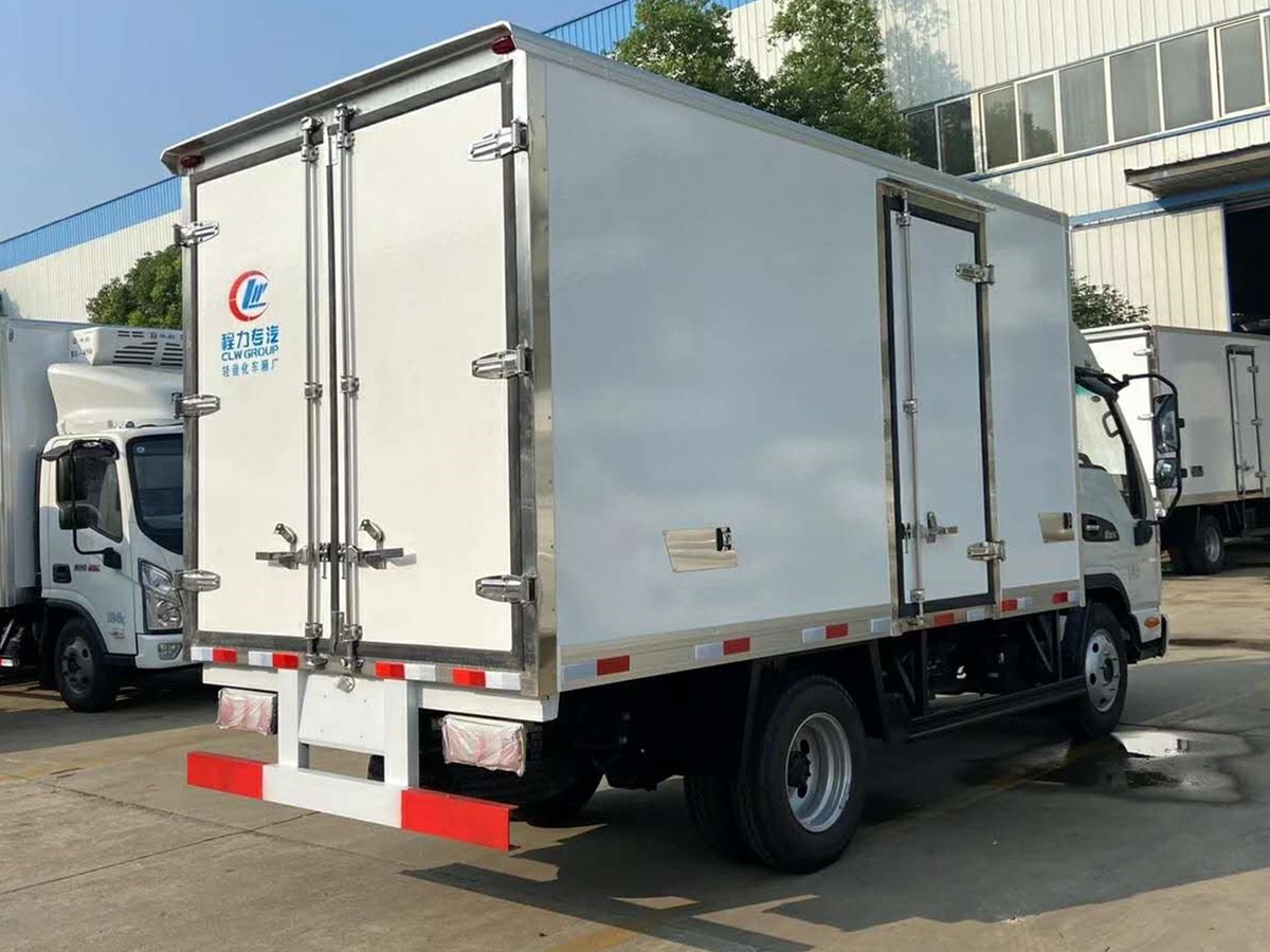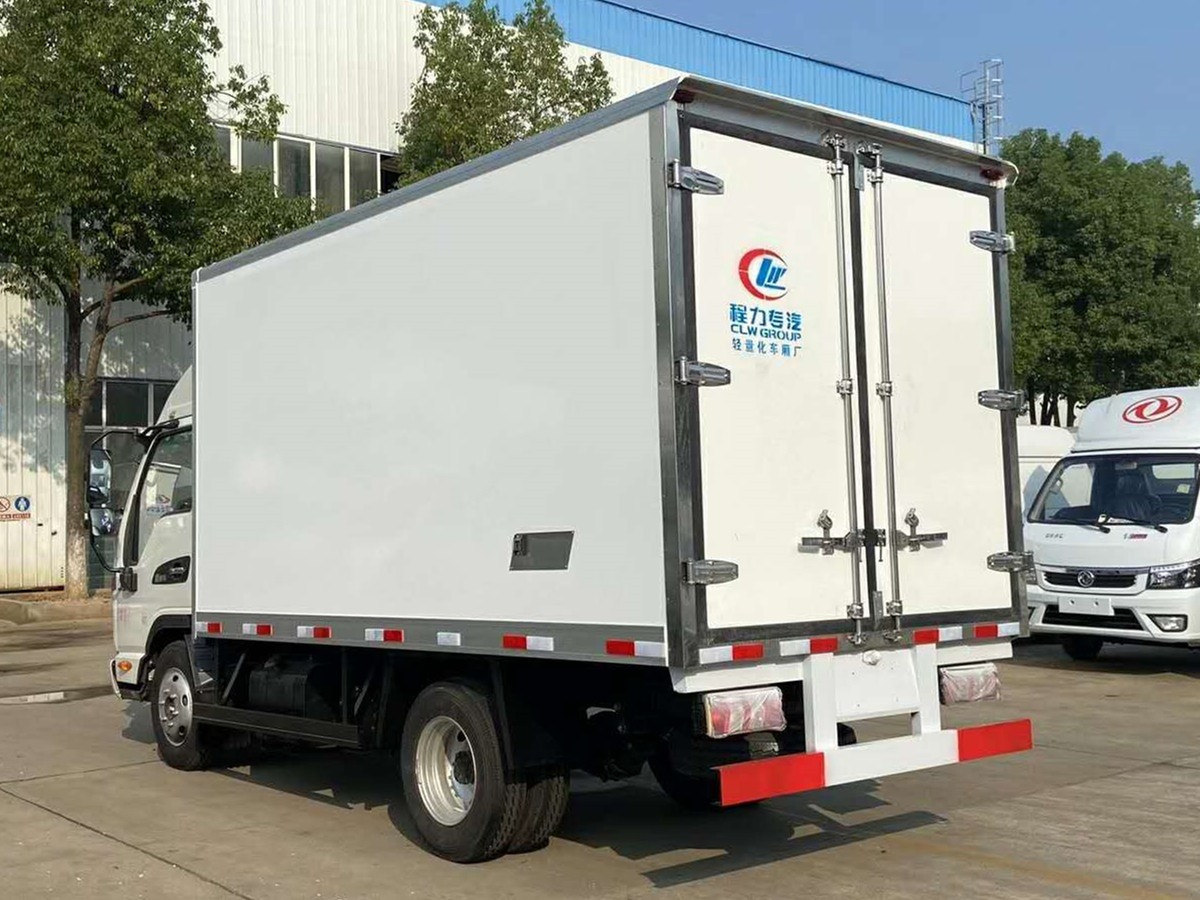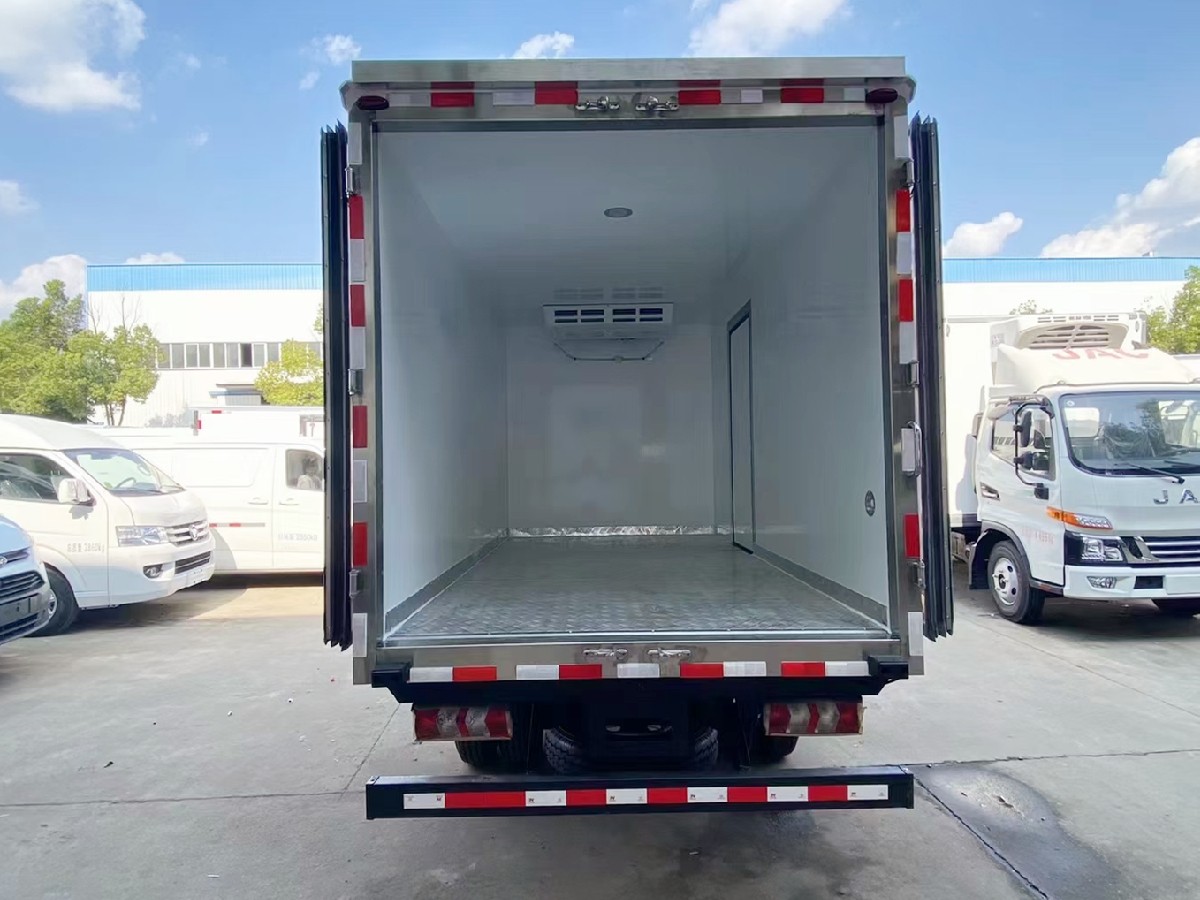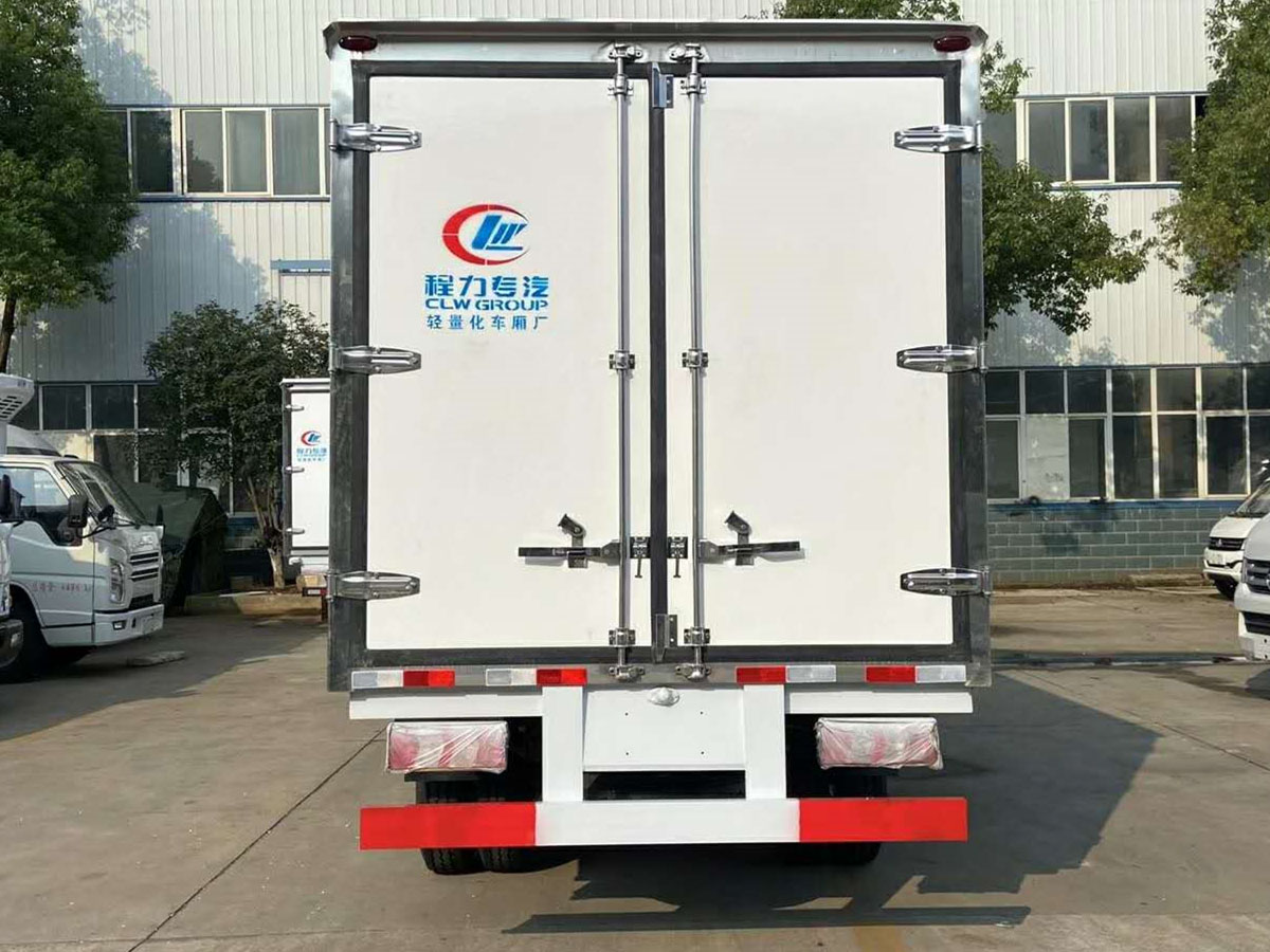 (2)廂板材質:內外壁板選用國內優質玻璃鋼(不吸光、隔熱性好、硬度強、抗氧化);中間保溫層為XPS擠塑聚笨板或聚氨酯;廂體厚度8CM。地板采用鋁花紋板,門邊條采用迷宮式橡膠密封條。