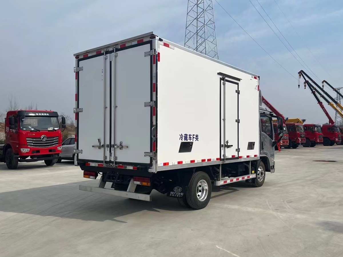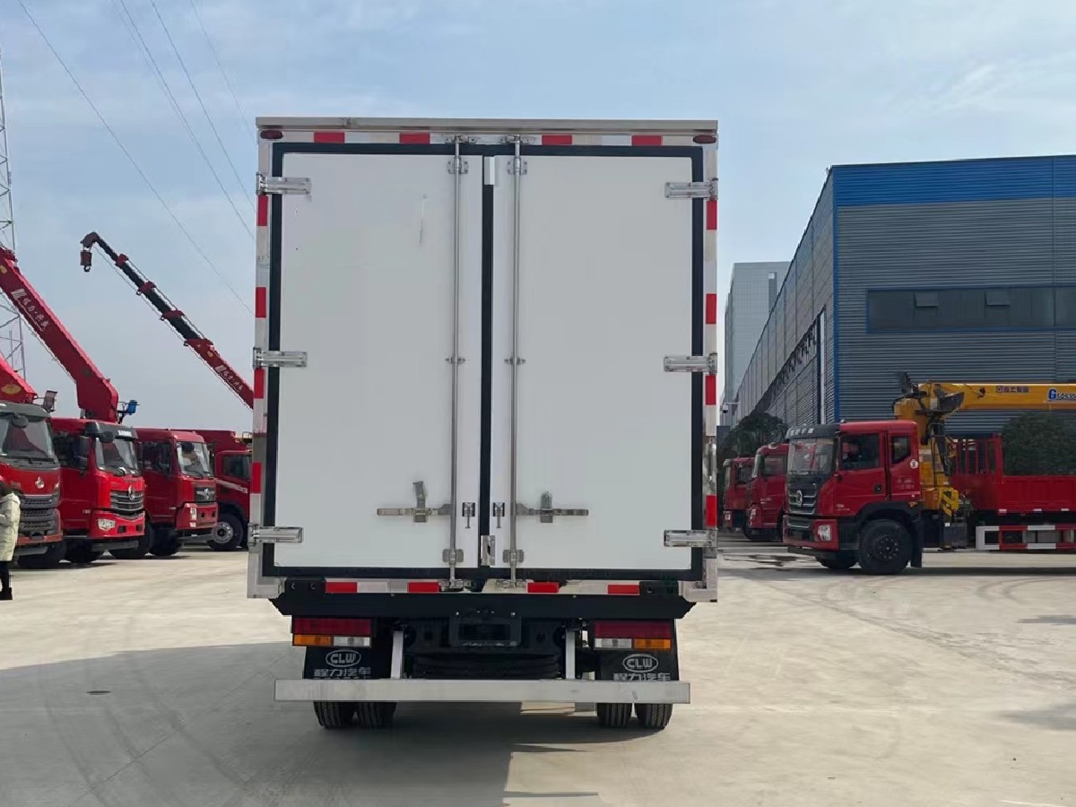 (2)廂板材質:內外壁板選用國內優質玻璃鋼(不吸光、隔熱性好、硬度強、抗氧化);中間保溫層為XPS擠塑聚笨板或聚氨酯;廂體厚度8CM。地板采用鋁花紋板,門邊條采用迷宮式橡膠密封條。