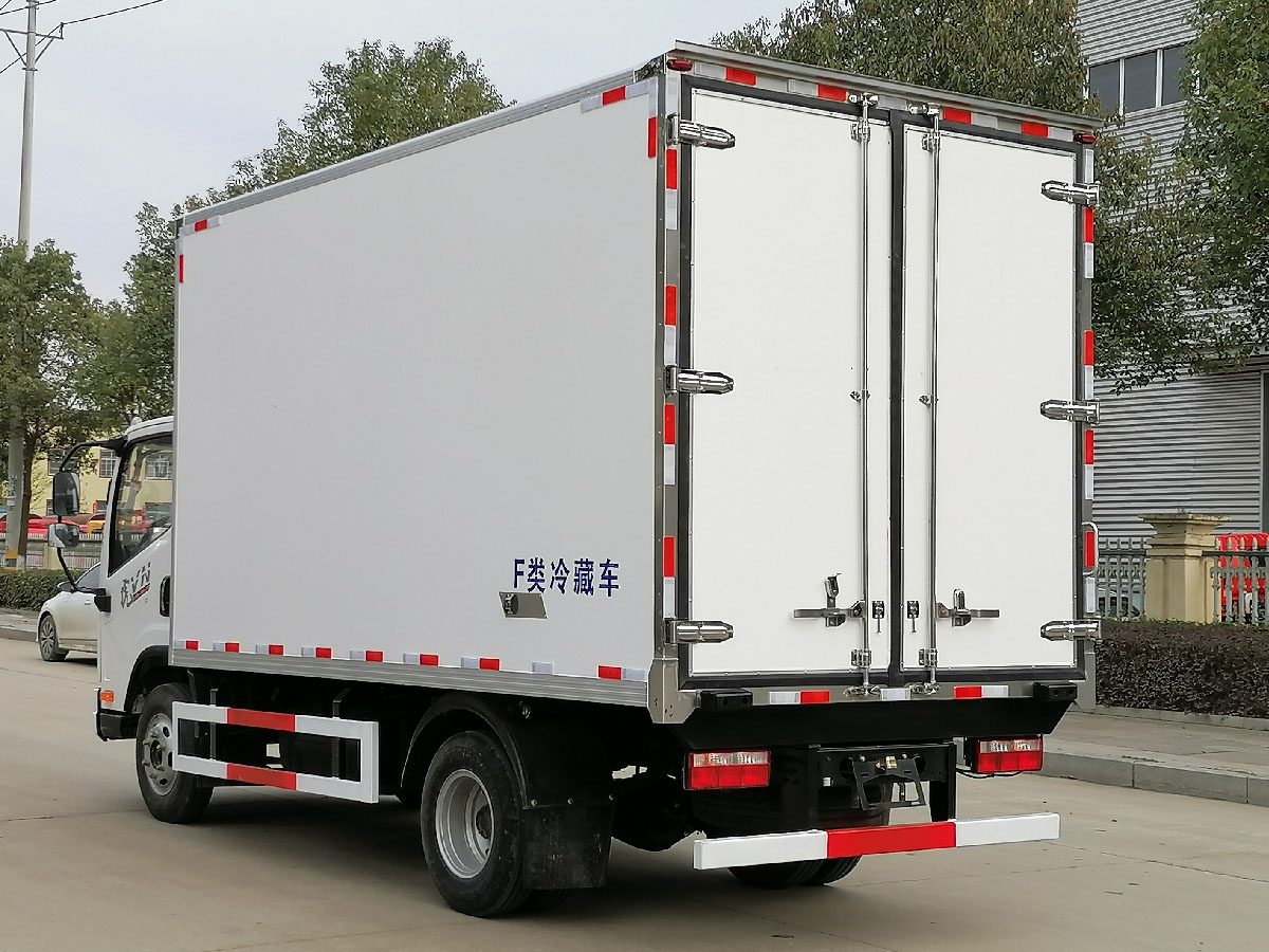 (2)廂板材質(zhì):內(nèi)外壁板選用國內(nèi)優(yōu)質(zhì)玻璃鋼(不吸光、隔熱性好、硬度強、抗氧化);中間保溫層為XPS擠塑聚笨板或聚氨酯;廂體厚度8CM。地板采用鋁花紋板,門邊條采用迷宮式橡膠密封條。