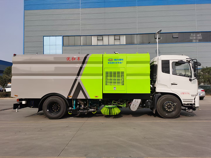 該車是采用東風天錦底盤改裝而成,集掃路車、灑水車和高壓清洗車功能于一體,具備路面清掃、路面洗刷、高壓清洗、低壓沖洗、路緣石洗刷、垃圾收集、污水回收、噴霧降塵和道路隔離墻清洗、小廣告清洗等多種作業功能。具有先進的智能化一鍵控制技術,全部作業均在駕駛室內完成,作業時,只需選定作業模式后,各作業機構的啟動與關停由程序自動控制。有“全洗掃”、“左洗掃”、“右洗掃”、“全掃”、“左掃”和“右掃”、“全洗”、“左洗”和“右洗”9種作業模式可供選擇。