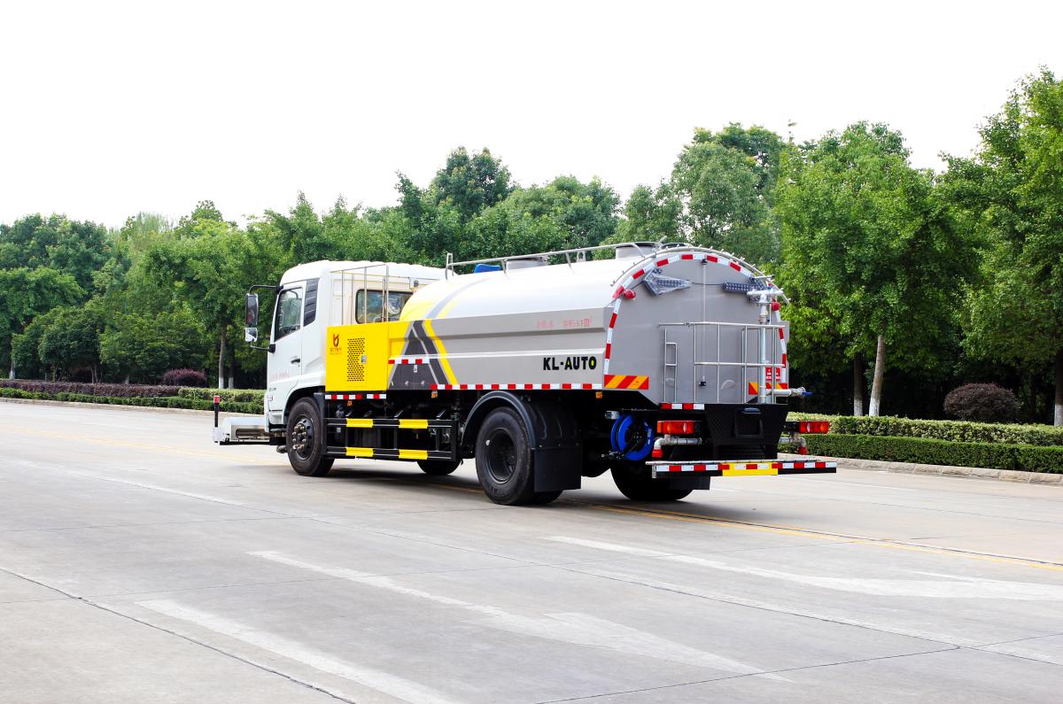 東風天錦道路洗掃車具有路面灑水、沖洗、掃路、清洗、降塵等多種功能。同時配有高壓水槍可 對道路衛生死角、牛皮癬及車輛自身進行清潔作業。